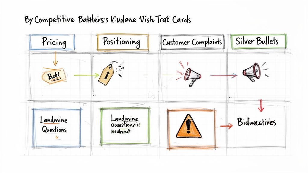Alright, so what actually goes into one of these things? A truly effective battle card isn't just a laundry list of your competitor's features. It's a strategic cheat sheet, built for a sales rep who has exactly 30 seconds before hopping on a call.