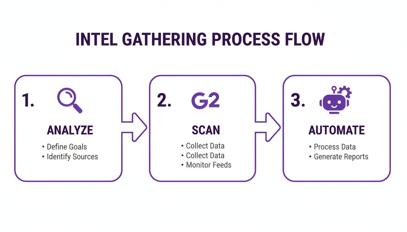 This process flow shows how modern intelligence gathering simplifies the initial steps of analysis and scanning before you get to full automation.