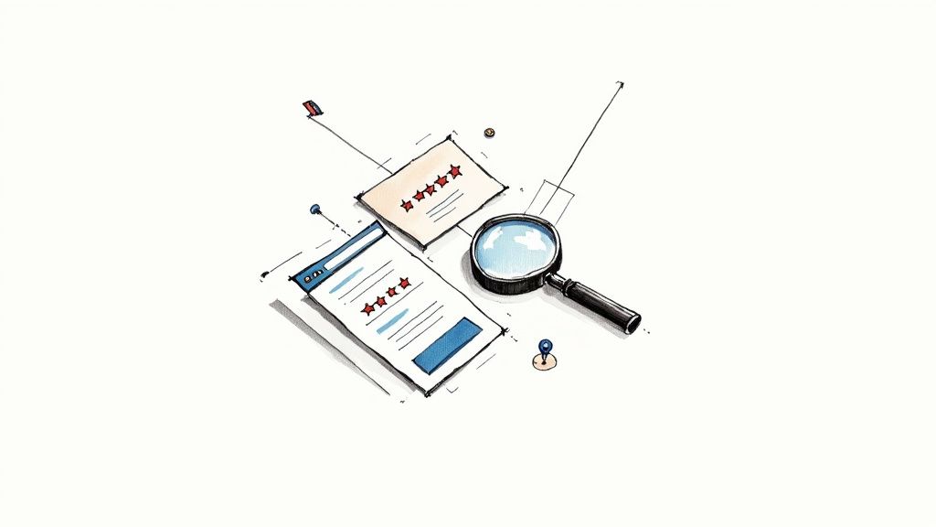This image perfectly captures the spirit of the mission: digging into reviews and documents to uncover what people really think. Your first job is to hunt down the public-facing clues your competitors leave all over the internet.