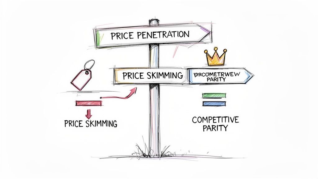 Competitive Parity (The Safe Bet): This is all about pricing your product right in line with the market average. You’re not the bargain bin option, but you're not the luxury choice either. This strategy takes price off the table and forces the conversation to focus on your unique value—be it better features, incredible customer service, or a stronger brand. It's a solid, stable approach, but it means you won't stand out on price alone.