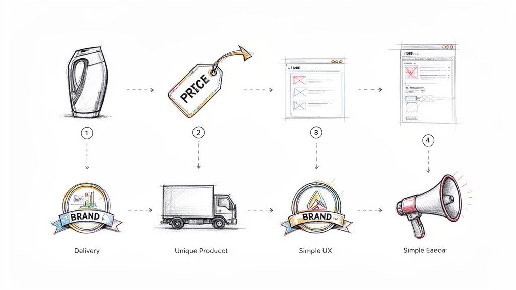 This is one of the most powerful differentiation strategy examples because it’s so hard for competitors to copy. You can replicate a feature overnight, but you can't easily replicate a world-class culture of customer obsession. Think of Zappos' legendary service, where reps are encouraged to stay on the phone as long as it takes to make a customer happy. That's a real competitive advantage.