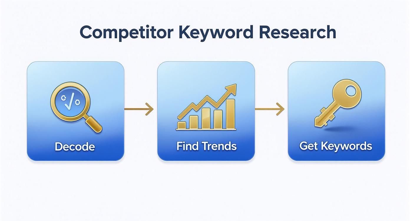 To find the keywords your competitors are using, you really just need to pop their top-ranking pages into an SEO tool. This little trick spits out the exact search terms that are pulling in their organic traffic, giving you a proven list of keywords to build your own strategy around. Think of it as an SEO cheat sheet that lets you skip months of guesswork.