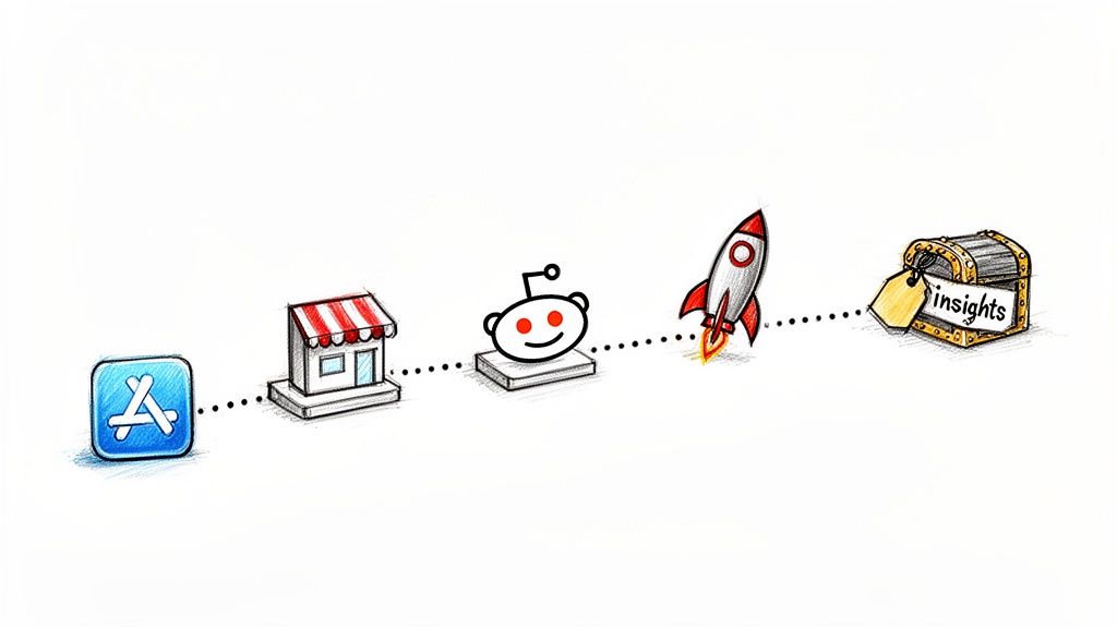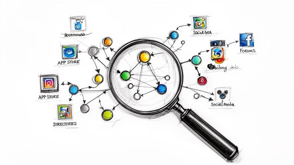 Thinking all your competitors are duking it out on Google's front page is a classic rookie mistake. A huge chunk of the action happens in specialized ecosystems where your customers are already shopping, complaining, and actively searching for solutions. This is your treasure map to those hidden hunting grounds.