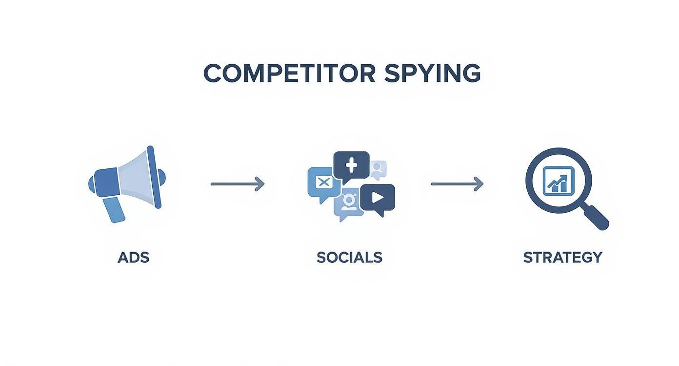 This quick flow shows how spying on their ads and social media feeds directly into your bigger-picture strategy.