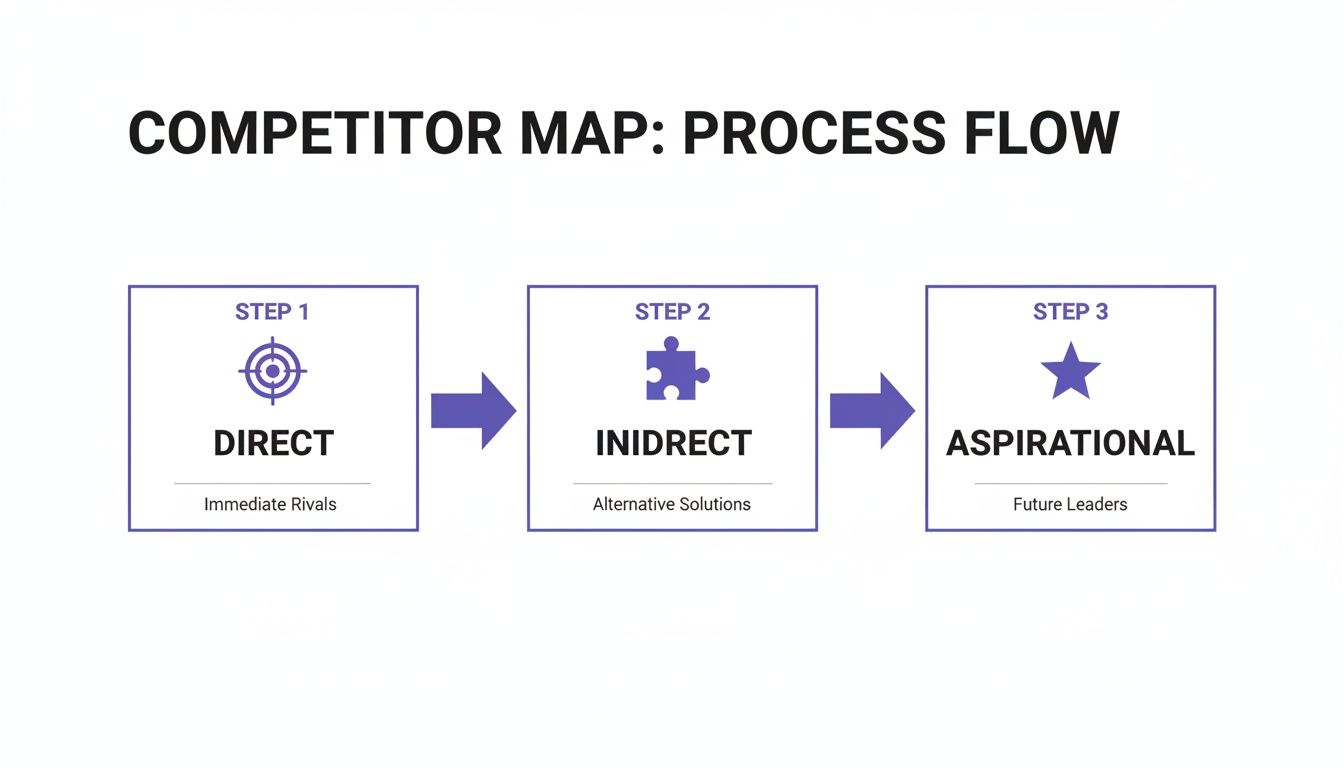 So, your first real step is building a proper competitor "hit list." This isn't some giant, unmanageable spreadsheet of every company that vaguely does what you do. It’s a smart, tiered map that shows you exactly where to focus.