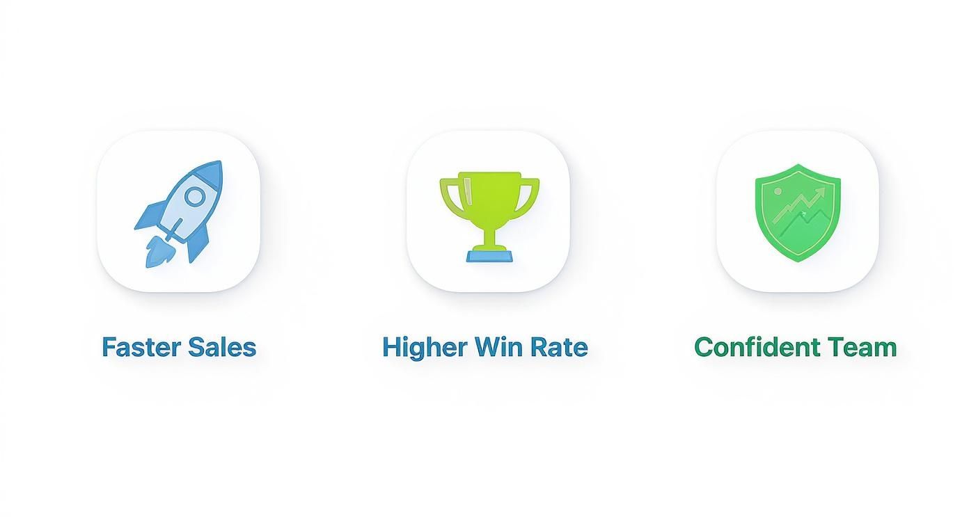 When you structure your battlecard this way, the impact on sales outcomes is immediate and measurable: faster sales cycles, higher win rates, and a far more confident team.