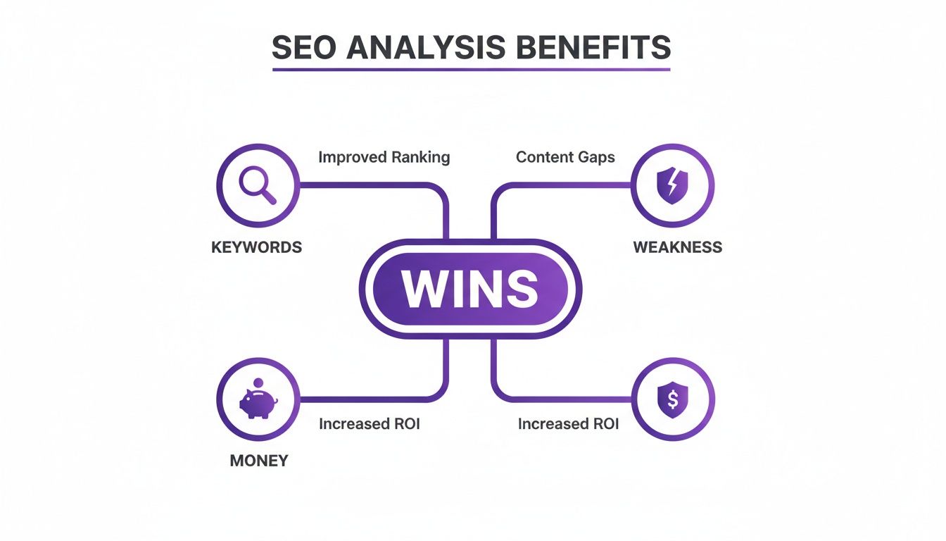 This whole process of finding gaps and executing a plan is fundamental. For a deeper look, you can check out our guide on how to conduct competitive analysis for a structured approach.