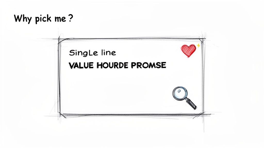 Think of it like the bio on a dating profile. You’ve got seconds to grab someone's attention, explain what makes you a great catch, and convince them you’re a better bet than the hundreds of other profiles they could swipe on. That's a value proposition in a nutshell. It has to be compelling, honest, and instantly signal whether you're a good match.