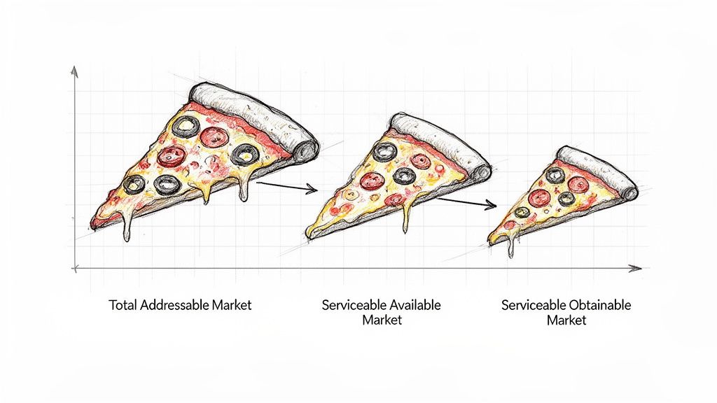 This whole process is about moving from "what's possible" (TAM) to "what's plausible" (SOM). To ground your estimates in reality, you have to embrace the importance of due diligence, which always includes a deep dive into the market.